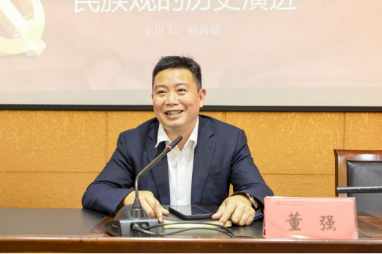 董强作总结发言。他表示,杨昌儒教授为在场师生深入浅出地讲解了党的民族政策和实践发展,让在场师生对党的民族政策和实践有了更深的认识,更勉励我们要努力提高学科素养和个人能力,积极投身于中华民族各项事业的建设发展征程中。