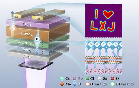 近日,我校材料科学与工程学院罗光灿副教授为独立通讯作者,2023级材料工程专业硕士研究生岑宝芬为第一作者,贵州民族大学为第一单位,在材料科学领域国际顶级期刊《先进功能材料》(Advanced Functional Materials)发表题为《Enhanced-Performance UV Photodetectors via Efficient Passivation of the SnO2/Perovskite Interface using Cl-Terminated Mo4/3B2-x MBene for High-Definition Ultraviolet Imaging》(含氯基团的Mo4/3B2-x MBene有效钝化SnO2/钙钛矿界面实现高性能紫外光电探测器用于高清紫外成像)的学术研究论文。