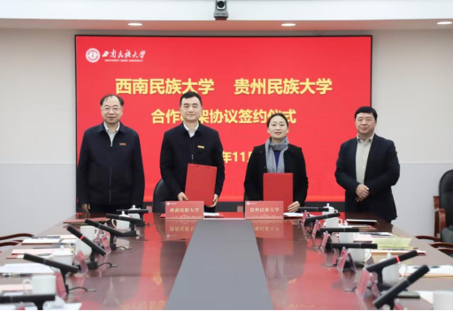 我校党委常委、副校长汪红与西南民族大学党委常委、副校长杜林代表双方签署了《西南民族大学贵州民族大学合作框架协议》。根据协议内容,双方将在强化科研协同、深化人才培育、推进队伍共建、聚焦学科共建等方面开展全面深入合作。