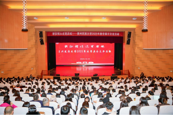 12月15日下午,贵州民族大学“新征程从这里启航”2025年教学展示交流活动在南校区C3学生活动中心大礼堂举行。全体在校校领导、处级干部、校级督导、系部主任及师生代表共800余人齐聚现场,活动还特别邀请教育厅思政处二级调研员姜敏到场,共同见证学校教育教学改革的丰硕成果。在决胜“十四五”、布局“十五五”的关键节点,此次活动既是贯彻落实学校第三次党代会精神的重要教学实践,也是对全年“以赛促教、以赛促学、以赛促改、以赛促建”系列举措所取得成绩的集中检阅。