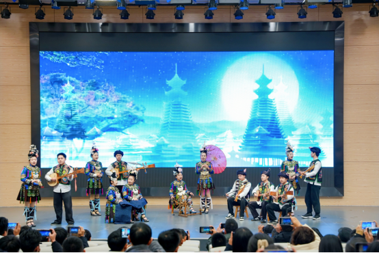 开幕式在石行的《诗词吟诵里的中华人文之美》吟诵表演中拉开帷幕。古朴悠扬的吟诵声穿越时空,将中华诗词的韵律之美与人文底蕴娓娓道来,为整场活动奠定了庄重典雅的文化基调。我校音乐舞蹈学院学生带来《侗族大歌》,学生们以纯净空灵的和声,演绎出山林、流水、劳作等自然与生活场景,歌声时而婉转悠扬,时而雄浑壮阔,不仅传递了侗族文化的独特魅力,更彰显了我校在民族文化传承与人才培养方面的深厚积淀,赢得了现场观众的阵阵掌声。