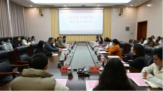 随后,助学金发放仪式在南区行政楼第七会议室举行。汪红在致辞中对予以资助的爱心企业家们表示诚挚感谢,高度赞扬了他们情系教育、反哺家乡的责任担当。汪红表示,“春山炬寓意希望之火,星途计划寄托前行之愿”,企业家的捐赠不仅缓解了学子们的经济压力,更将化作精神火种,激励学子奋发图强,回馈社会、反哺家乡。