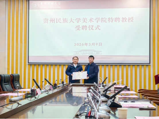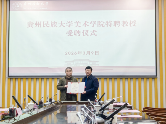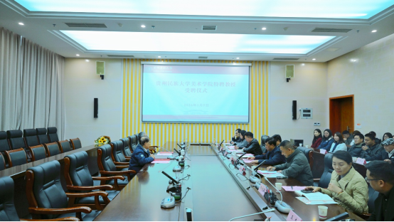3月9日,贵州民族大学美术学院特聘银龄教授聘任仪式在南校区行政楼第七会议室举行。校党委书记吕国富出席仪式并讲话。聘任仪式由美术学院党委书记范昭平主持。