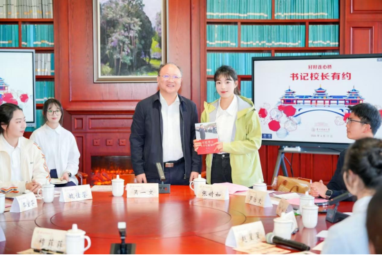 座谈会后,吴一文为学生代表赠送《习近平与大学生朋友们》一书,勉励大家从书中汲取信仰力量、坚定理想信念,争做有理想、敢担当、能吃苦、肯奋斗的新时代好青年。